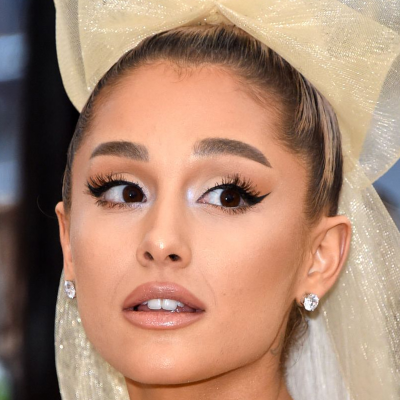 Neutralizaram a cor da pálpebra da Ariana e aplicaram postiços dramáticos. Tenho a impressão que rolou um leve esfumadinho rente aos cílios inferiores e bem no cantinho externo dos olhos.