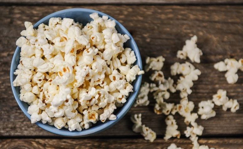 Três xícaras de pipoca podem ter a mesma quantidade de carboidratos e calorias que uma fatia de pão, mas elas ocupam muito mais espaço dentro do nosso estômago, fazendo com que a barriga fique inchada.
