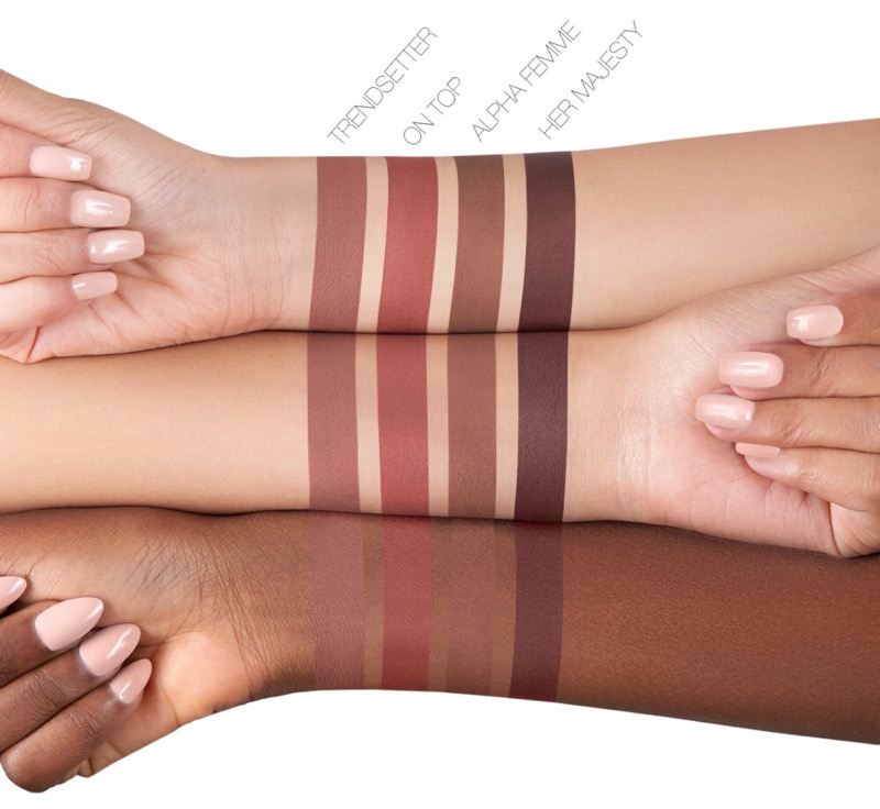 As cores são: Trendsetter (mauve); On Top (marsala); Alpha Femme (marrom acinzentado) e Her Majesty (marrom escuro acinzentado).