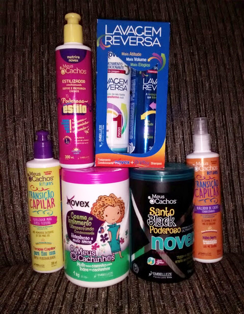 Novex Meus Cachos Transição Capilar Equalizador Para Dupla Textura: Leave-in modelador de cachos, indicado para cabelos em transição capilar, ou seja, cabelos que estão cacheados (naturais) na raiz e alisados nas pontas. O resultado, livre de óleo mineral e silicones insolúveis, promete modelar a secção alisada e deixá-la com textura mais próxima à do cabelo originário. Para isso, ele deve ser aplicado nos cabelos úmidos e, em seguida, a secção alisada precisa ser enrolada e mantida presa até a secagem totalidade dos cabelos. Contém colágeno, óleos de linhaça e oliva e filtro solar. Depois secagem é só soltar os fios. Será que funciona? Vou testar e depois venho narrar pra vocês.