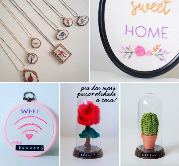 * Encomendas pelo : www.bordadostudio.com.br / preços: camisetas e regatas entre R$ 59 e R$ 79; colar personalizado R$ 49; decoração de crochê, R$ 49