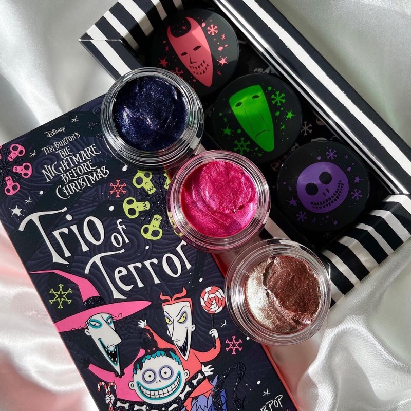 A paleta The Nightmare Before Christimas conta com diversas sombras com tons frios e muito brilho. É um conjunto maravilhoso pra quem busca makes mais frias.