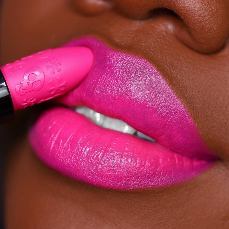A novidade conta com três opções de batons em bala. O ponto alto da novidade é a bala adornada com caveiras!