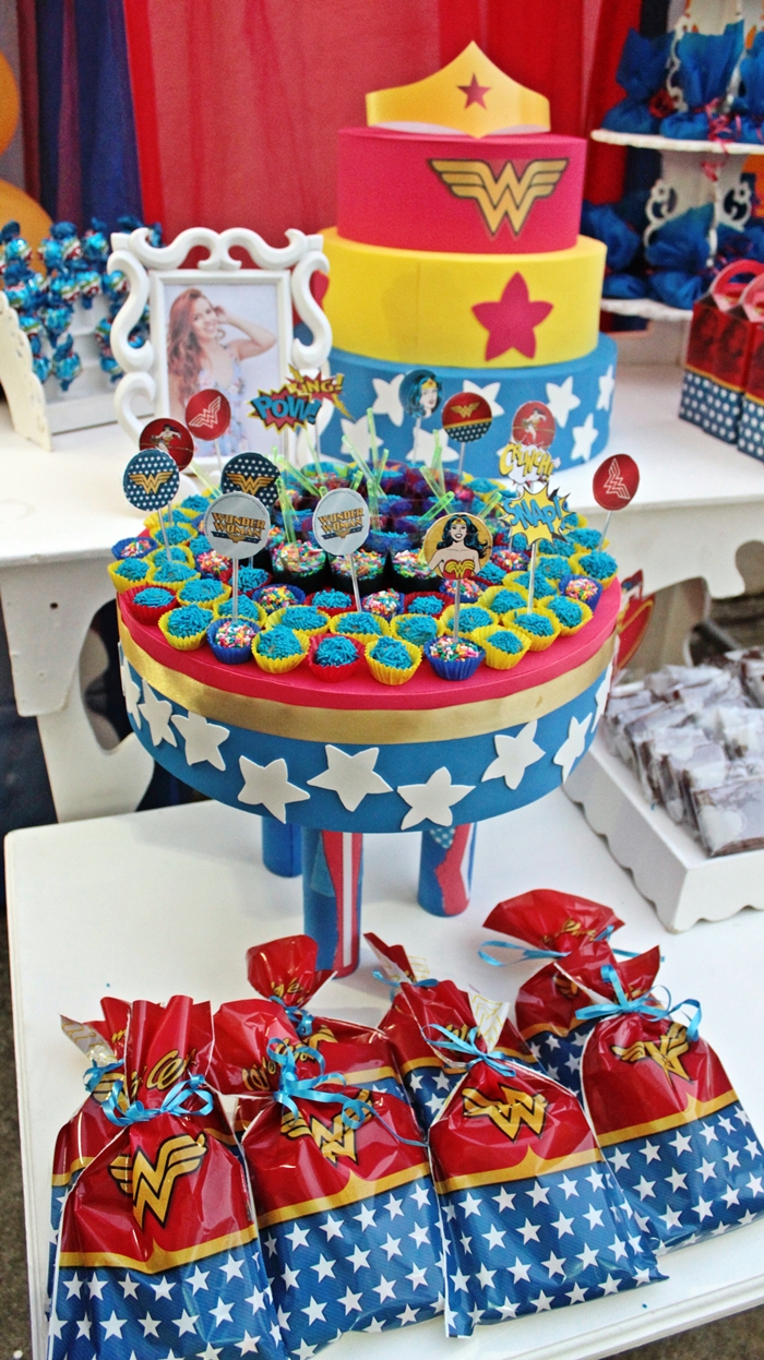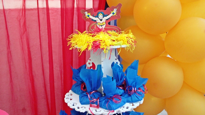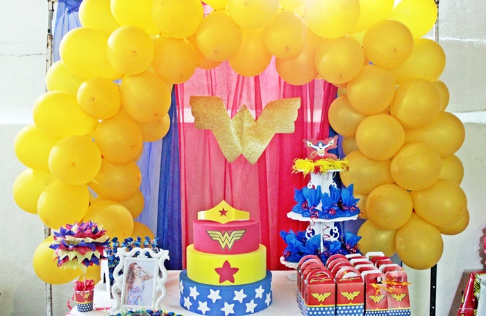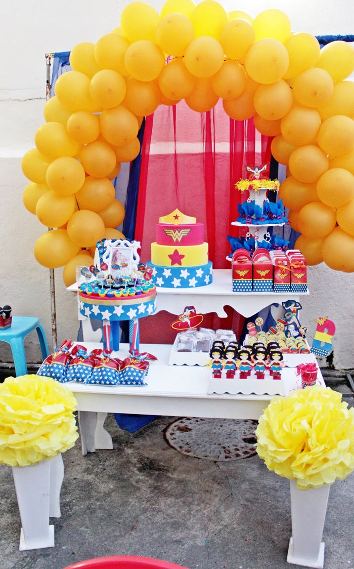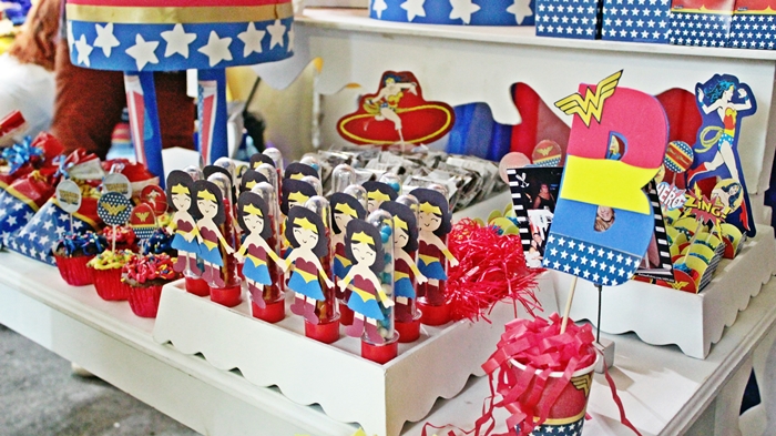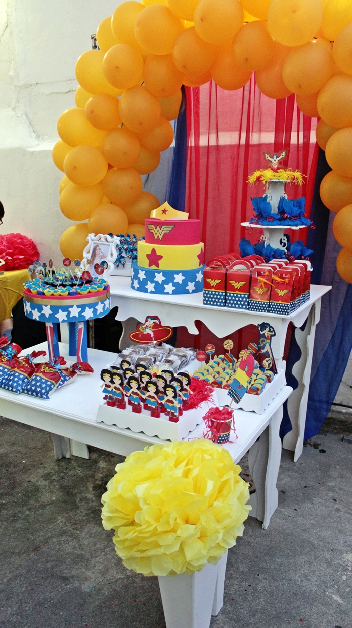 Finalmente venho com a decoração da festa da Mulher Maravilha, a decoração usada é da Festcolor e outra parte eu mesma preparei e ensinei em vídeos lá no canal.