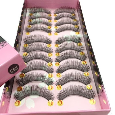 - 3 cartelas de cílios iços (grande, médio e pequeno) – tem cá
