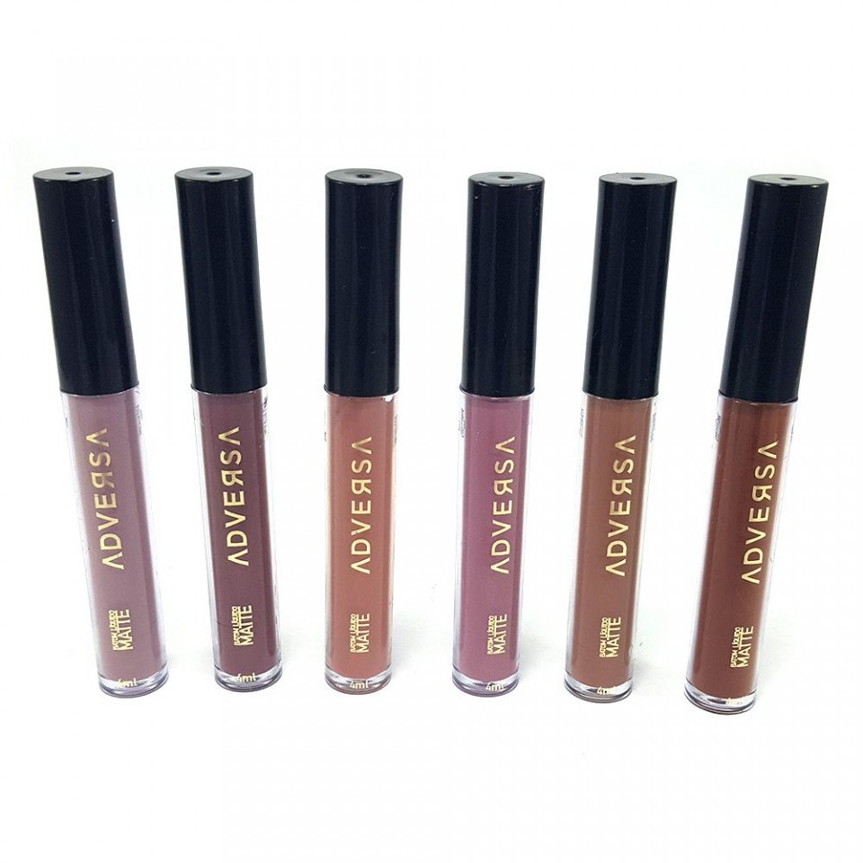 - 3 a 4 tons de batons líquidos mate (tons neutros, escuros e vermelhos) – tem cá