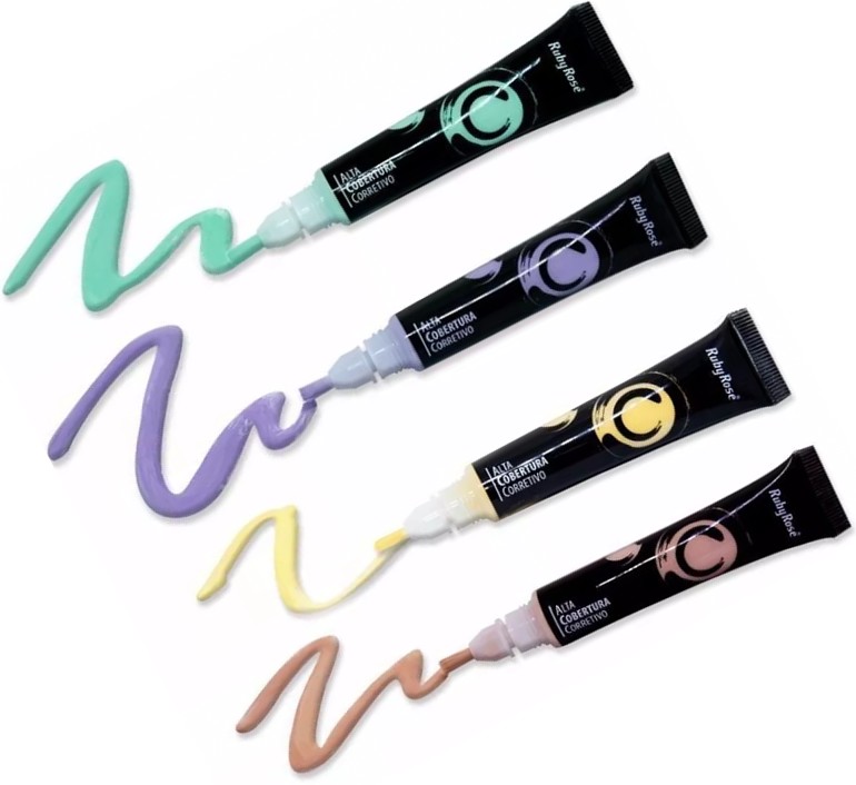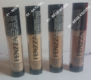 - 3 corretivos líquidos (evidente, médio e para pele morena) tem cá