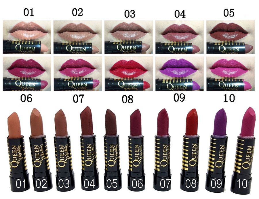 - 1 kit com batons foscos cores tons de boca, tons de rosa, tons de vermelho e tons escuros vinho e marrons) – tem cá