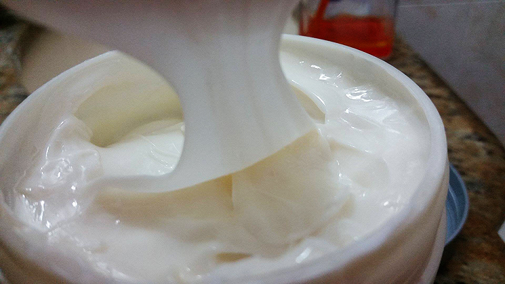 A máscara é muito cheirosa e consistente, porém a textura é muito dissemelhante de todas as outras que já experimentei. O efeito teia funciona assim: você coloca um pouco de creme nas mãos e ao maltratar uma na outra, o creme vai se transformando teia! Infelizmente eu não tinha ninguém pra me ajudar a tirar foto da teia (tem uma no Usei-Contei!), mas consegui tirar outras para vocês verem a textura. Eu fiz todo esse processo teia e fui aplicando todo o cabelo, enluvando mecha a mecha. Segundo a marca, o tempo de pausa é de 10 a 20 minutos (com ou sem nascente de calor). Eu optei por 10 minutos, no chuveiro mesmo. Depois o tempo de pausa, eu senti a textura dos fios porquê se eu tivesse aplicado uma máscara de reconstrução (os fios ficam um pouquinho rígidos). Logo resolvi finalizar com um condicionador e pronto!