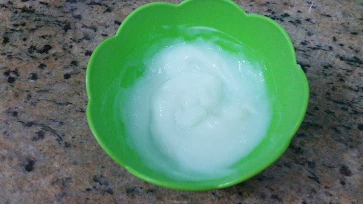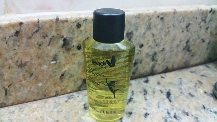 Eu achei esse produto muito bacana, especialmente pelo modo de preparo. Você separa uma determinada quantidade, de acordo com o comprimento do seu cabelo, mistura com água e como mágica, o líquido do frasco se transforma em um creme: