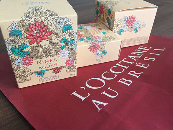 De cara já vi que eles acertaram com a Ninfa das Águas quando reparei nas embalagens super caprichadas: assim como em suas outras coleções, um artista brasileiro foi chamado para criar uma ilustração que represente a linha, esta no caso é da designer carioca Dani Cabral!