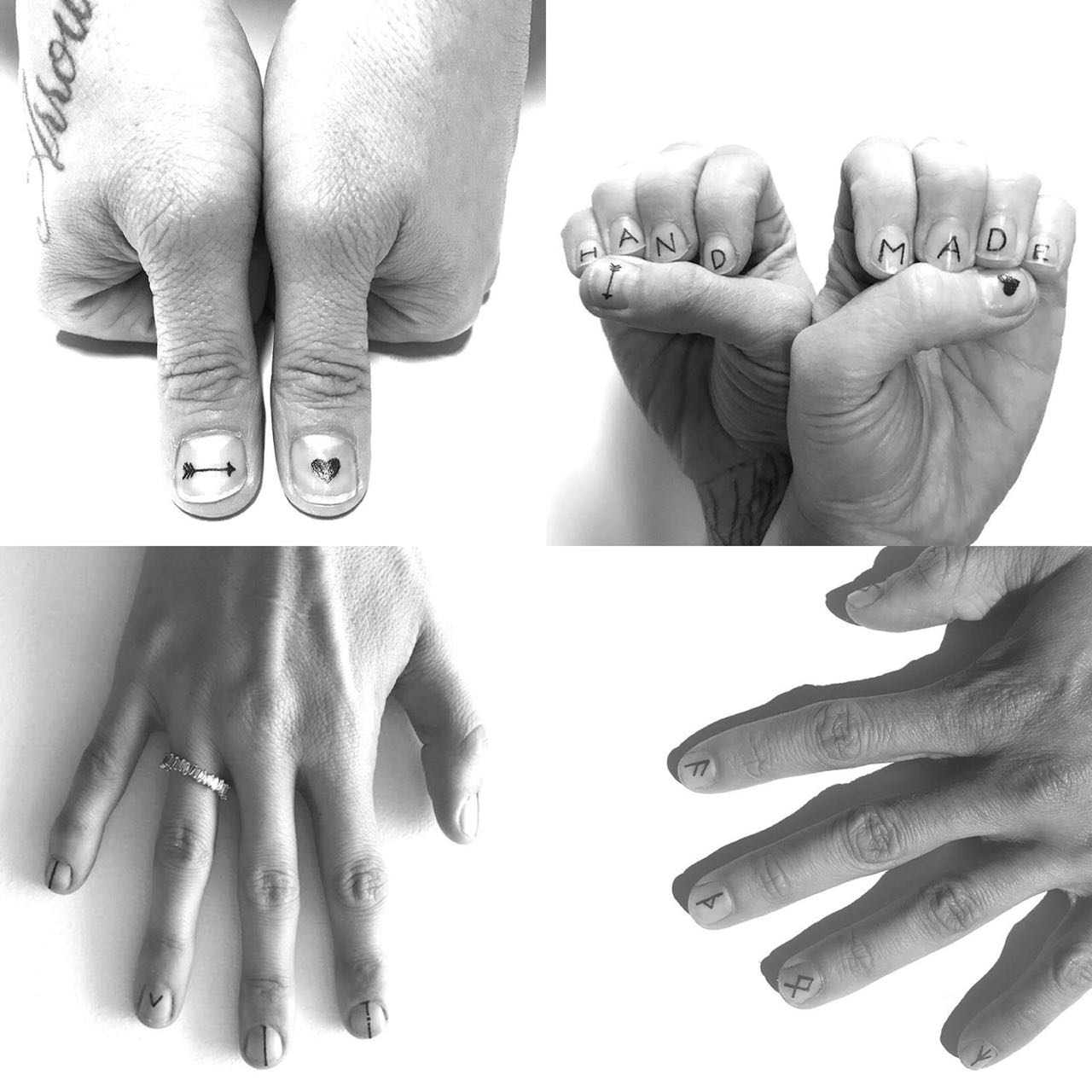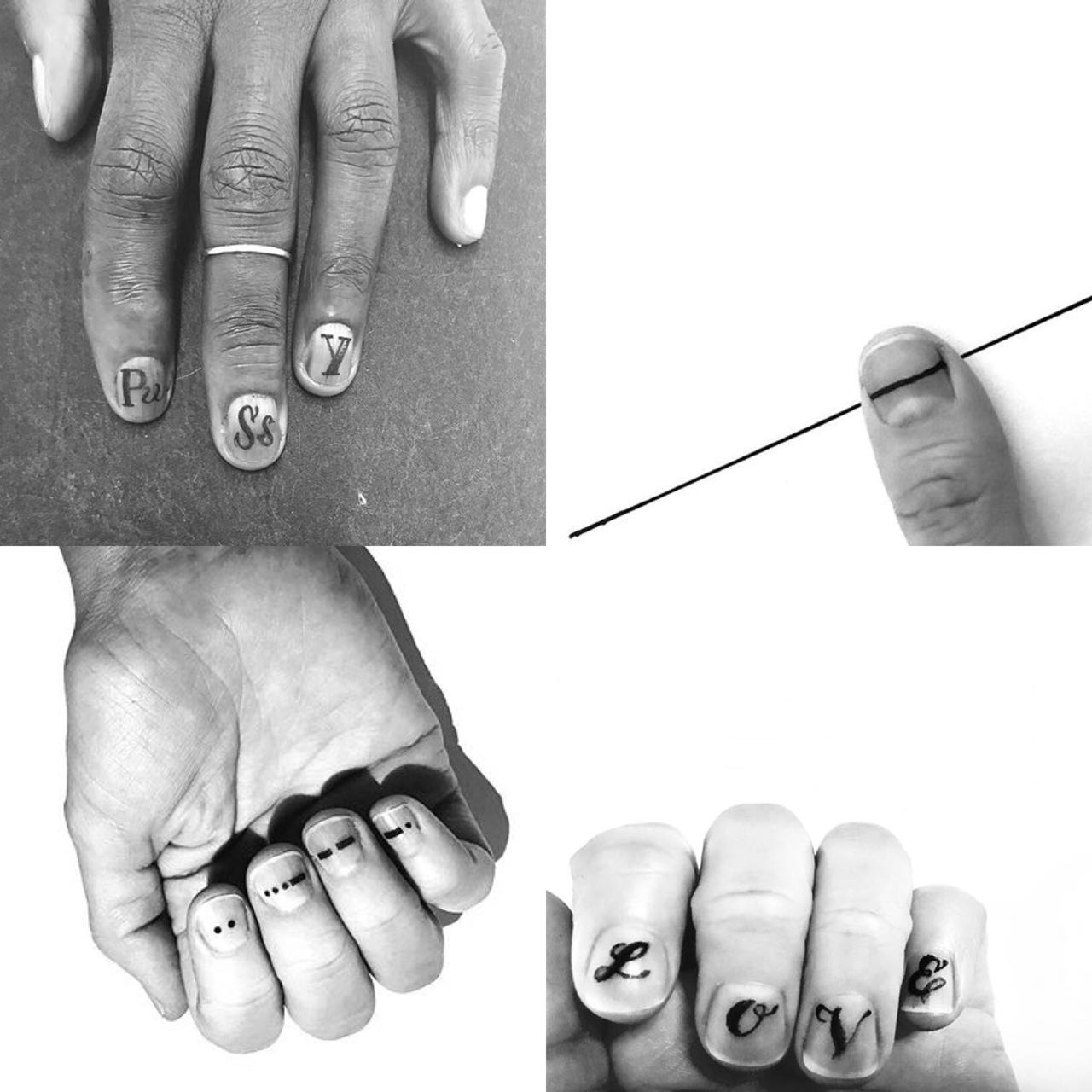 As tattoos têm uma pegada minimalista bem cool e também trazem um lado genderless para esse território tido sempre como tão feminino, quebrando aquela ideia de que #8220;nail art é só para mulheres”.