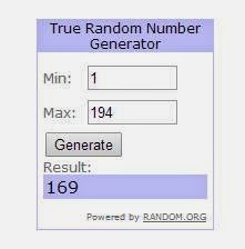Tivemos 194 inscrições. Fiz o sorteio pelo Random.org e o número sorteado foi o 169!
