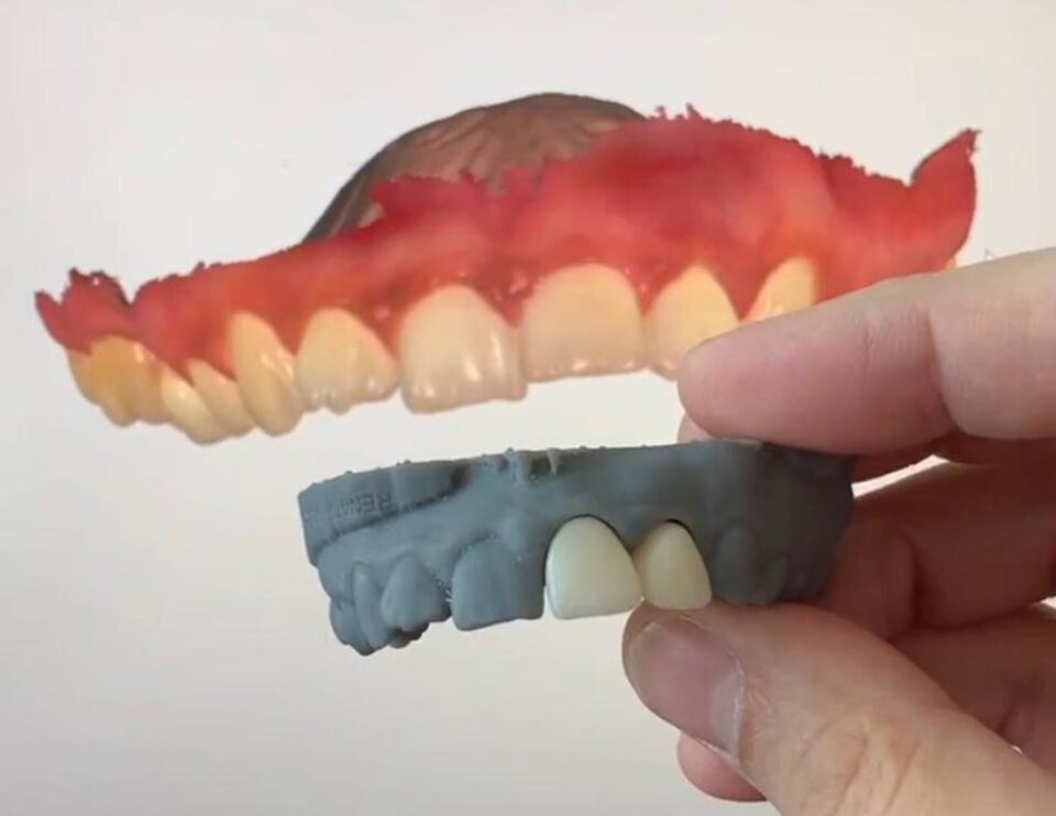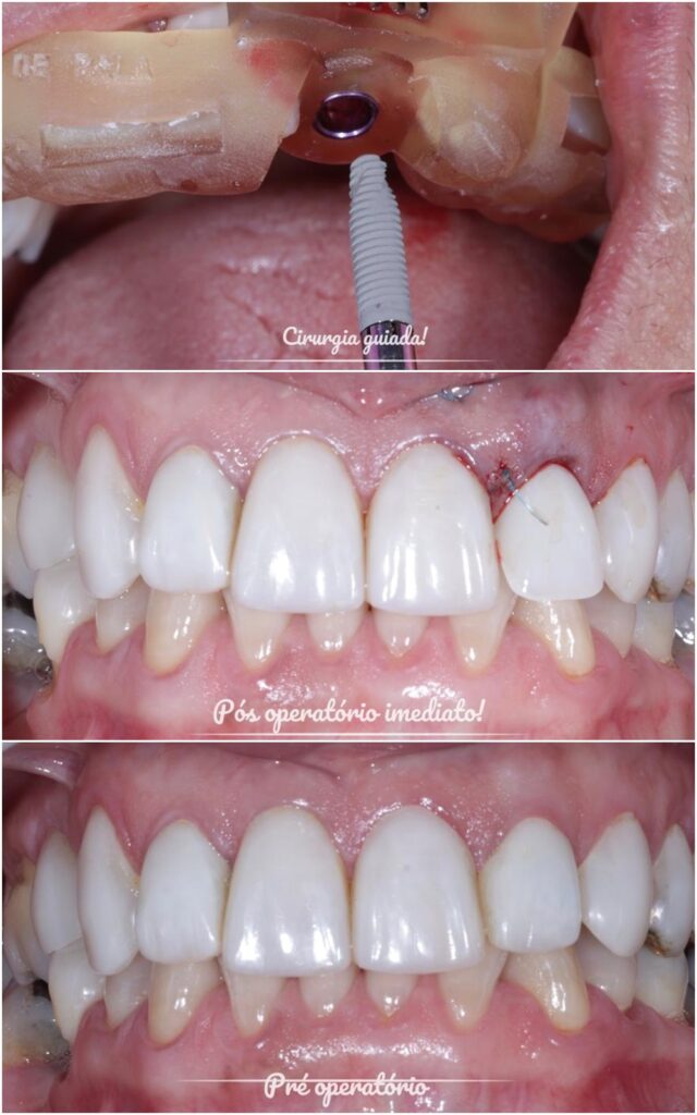 Em posse das duas imagens, preparamos o caso. O paciente recebe uma guia cirúrgica personalizada para realização do procedimento. A mesma é colocada sobre os dentes do paciente ou mesmo sobre a gengiva – em caso de perda de todos os dentes.