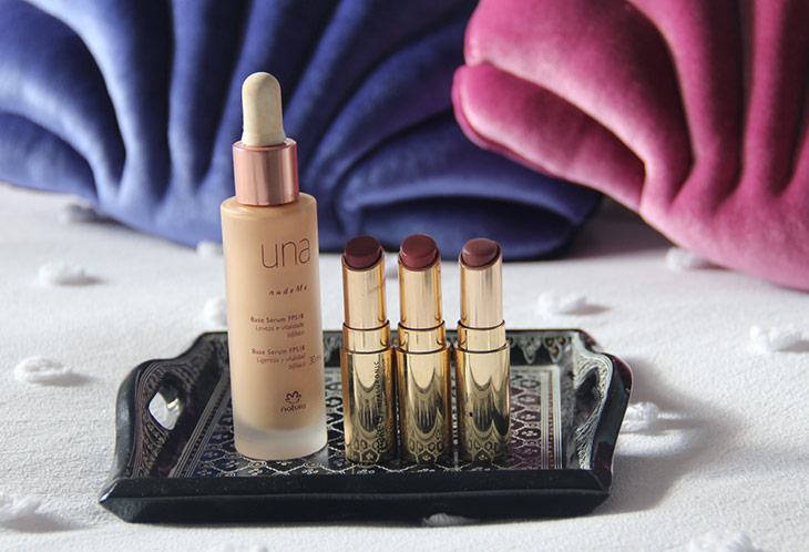Passando para a parte de maquiagem, devo dizer que estou APAIXONADA por essa base Nude Me da Natura! Ela não é novidade nem nada, eu já tinha testado e gostado dela quando saiu. Mas acho que acabou esquecida entre os lançamentos. Agora voltei a usar e AMO a textura levíssima. Pra mim só tem um problema: como acontece quase sempre com bases nacionais, ela é muito amarela pra mim.