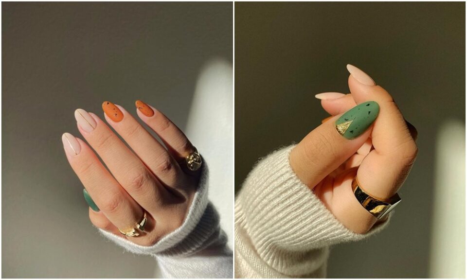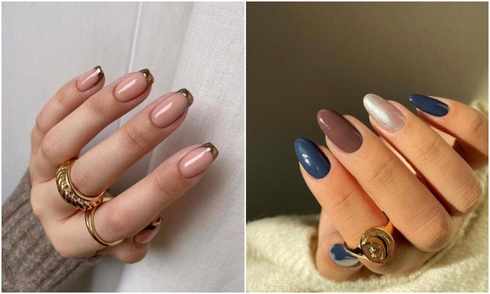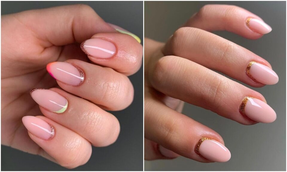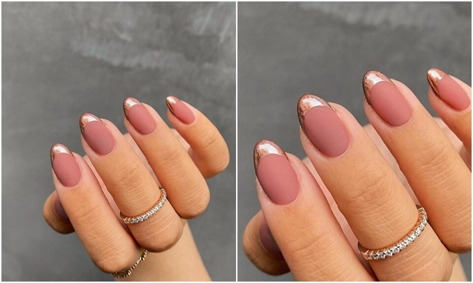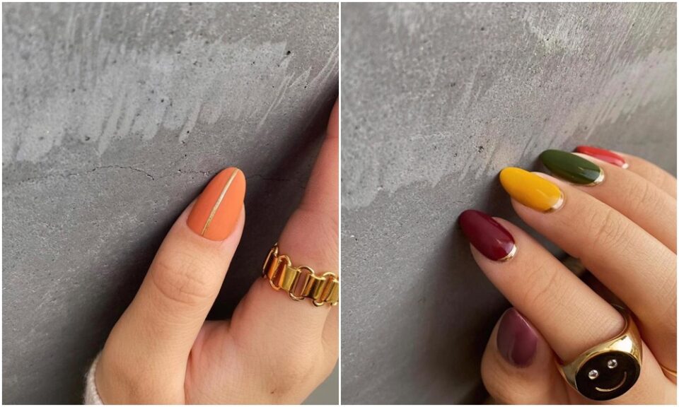 ✨ Francesa inversa, com esmalte dourado, e unhas coloridas – em tons sofisticados. Vale fazer também com tons pastel, hein?